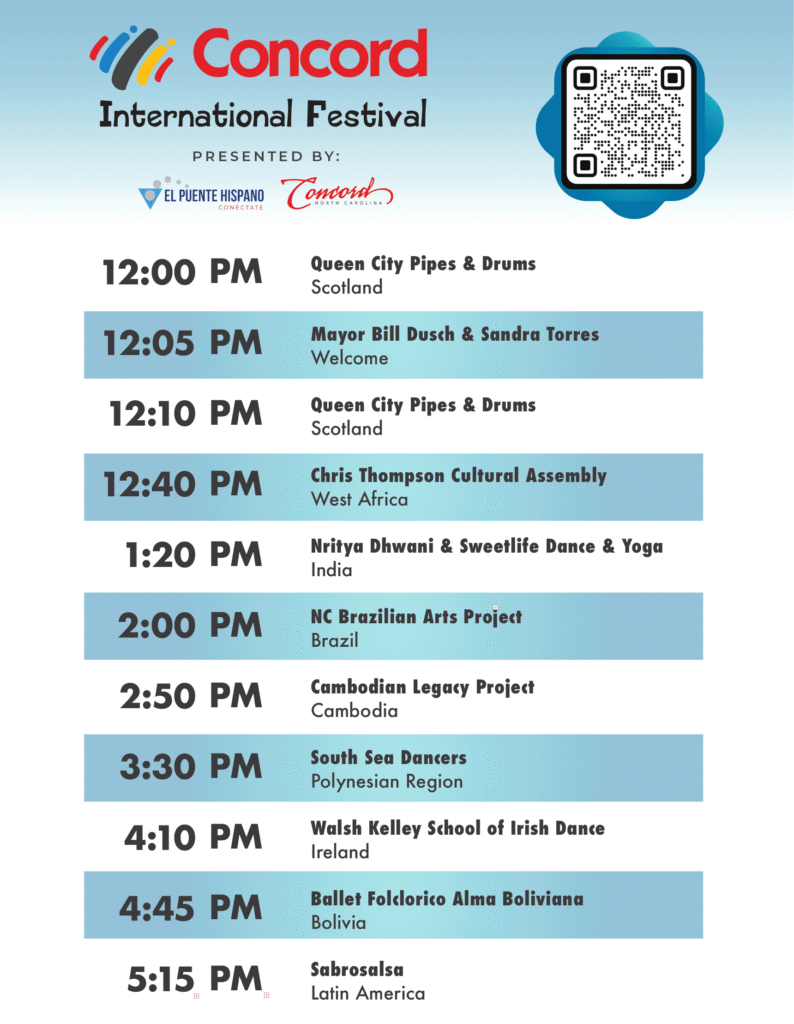 LOCATION & INFO The Concord International Festival is in Downtown Concord,NC at Union St.Checkout the schedule of performances and all event info bellow: PERFORMANCE Schedule